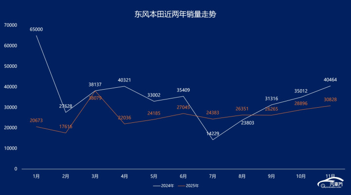 这其中,东风本田11月共卖出了30828辆,同比下滑了24%。今年1-11月,东风本田共卖出了288583辆,同比下滑了25%。